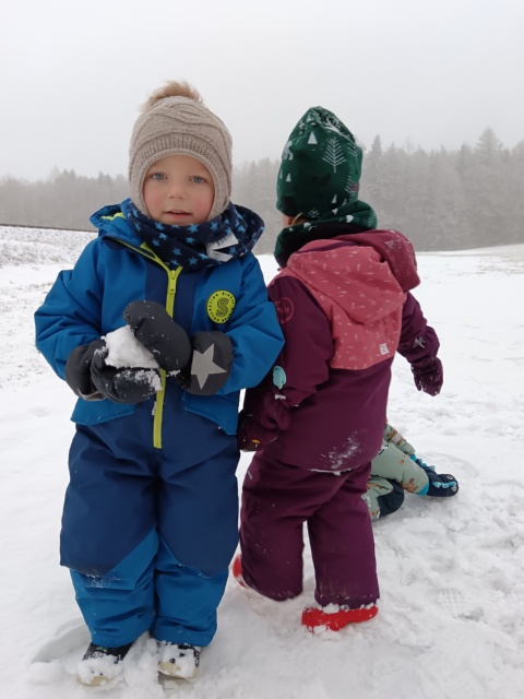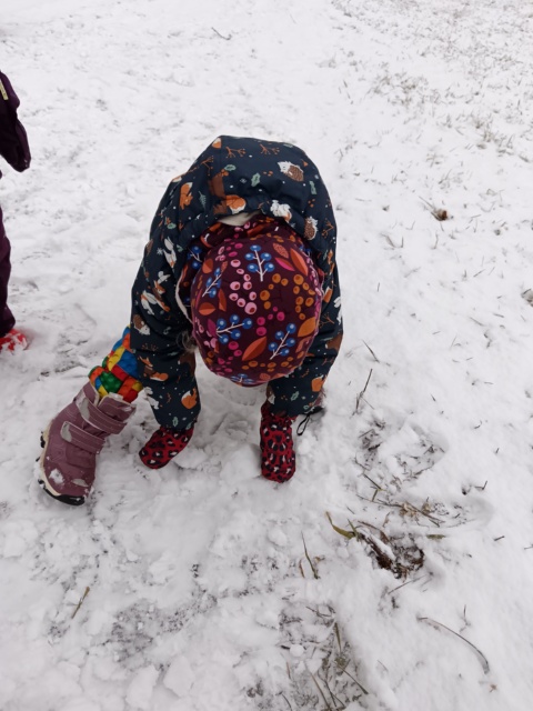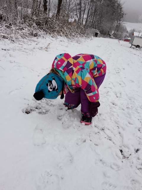 Zkoumáme hloubku sněhu, stopy ve sněhu, zkoušíme uválet koule.