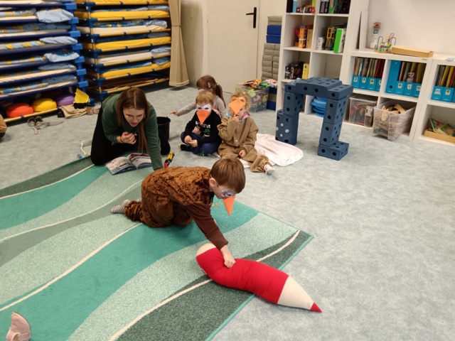Podporujeme čtenářství pomocí příběhů z knih. Rozvíjíme představivost a řeč- jak se kniha jmenuje, o čem bude? Co se stane dál? Kniha nám nabízí mnoho možností jak děti rozvíjet, a proto s příběhem prožíváme celé dny.