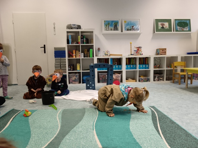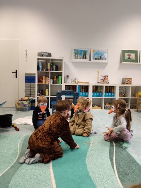 S příběhy pracujeme i ve třídě Moře. Děti si vyzkoušely kooperační činnosti k části příběhu O nejbohatším vrabci na světě.