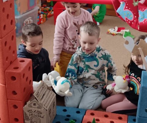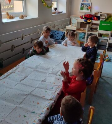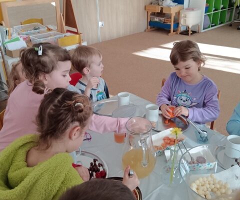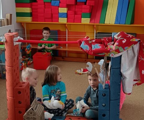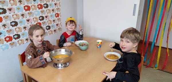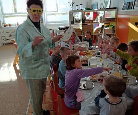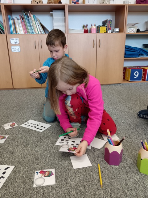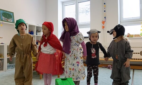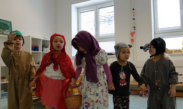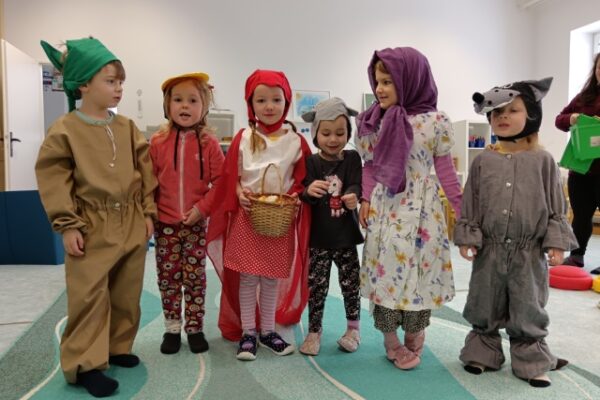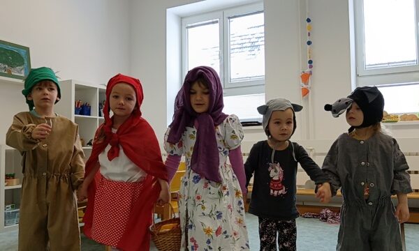 Název vzdělávacího bloku, který nám pěkně navázal na Masopostní týden. Věnovali jsme se hodně dramatizaci, která děti rozvíjí nejen po stránce rozvoje řeči, zapamatování textu, ale také po stránce sociální: vcítění se do role, odvážit se vystupovat, obléknout se do převleku.