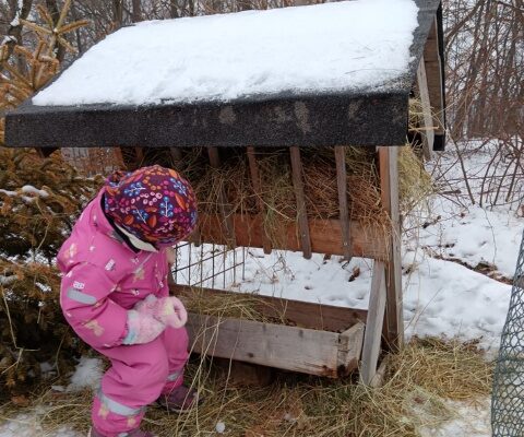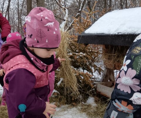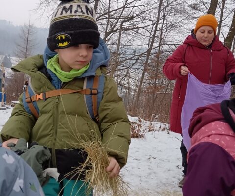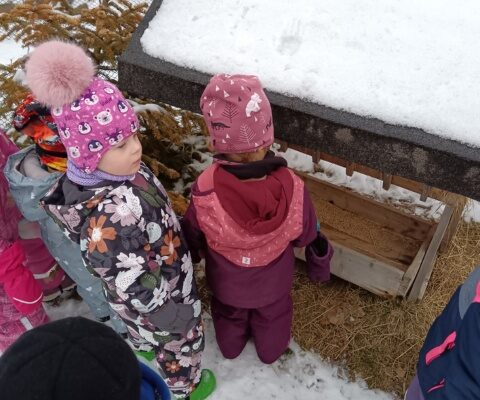 Mladší třída vyrazila doplnit krmení k jednomu z dětí, které má u kouzelného lesa krmelec. Ten jsme naplnili senem. Dále jsme pokračovali do kouzelného lesa dosypat zrní ptáčkům.