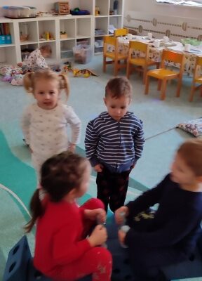 Nejdříve zahrály paní učitelky, potom hrály děti.